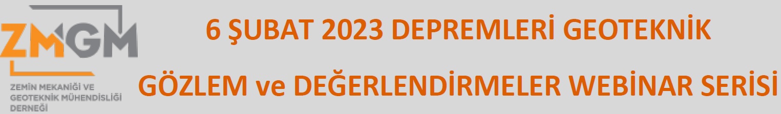Zemin Mekaniği ve Geoteknik Mühendisliği Derneği olarak hepimizi sarsan ve büyük acılara sebep olan Kahramanmaraş depremleri ardından bölgeye giderek çalışma ve incelemeler yapan meslektaşlarımızın geoteknik gözlemlerini sizlere aktarmak için "6 Şubat 2023 Depremleri Geoteknik Gözlem ve Değerlendirmeler" başlıklı webinar serisi düzenlemiştir. 14 Mart 2023 saat 19:00'da derneğimiz başkanı sayın Dr. Rasin Düzceer'in açılış konuşması ile başlayacak webinar serisinin programına linkten ulaşabilirsiniz. ZMGM tarafından düzenlenen webinarlar ZMGM Youtube sayfasından canlı olarak yayımlanacaktır. Sunumların ardından son yarım saatte Soru-Cevap bölümü yapılacak olup, sorular Youtube kanalından yazılı olarak alınacaktır. Seminerlerin video kaydına daha sonra ZMGM youtube sayfasından erişilebilecektir.
